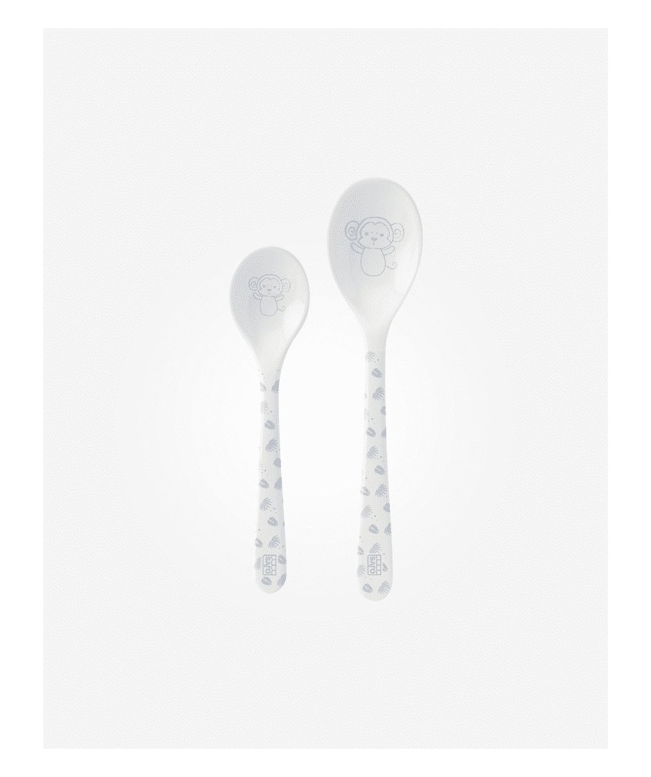 La de mayor tamaño de permite llegar al fondo de todos los tarritos sin mancharte y la pequeña es muy fácil de agarrar para los peques.