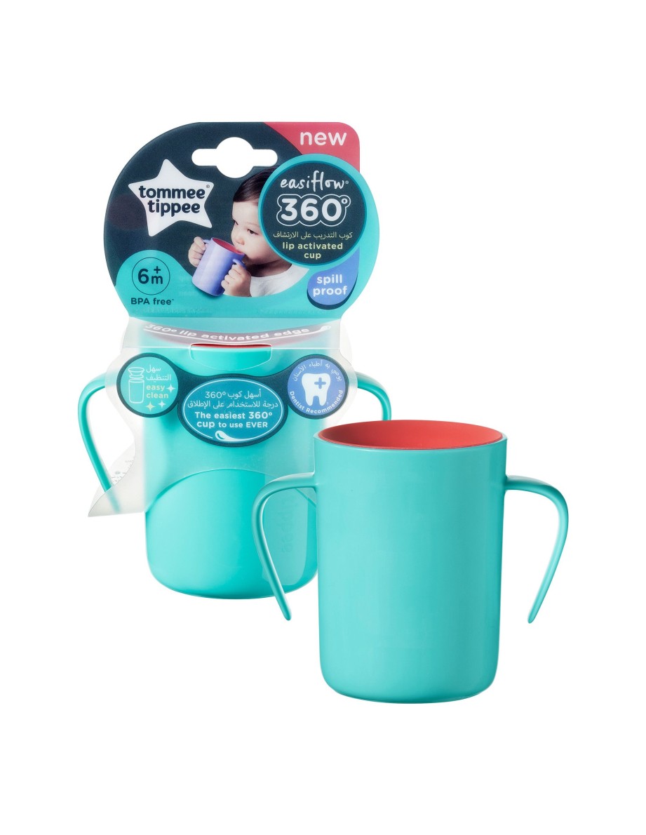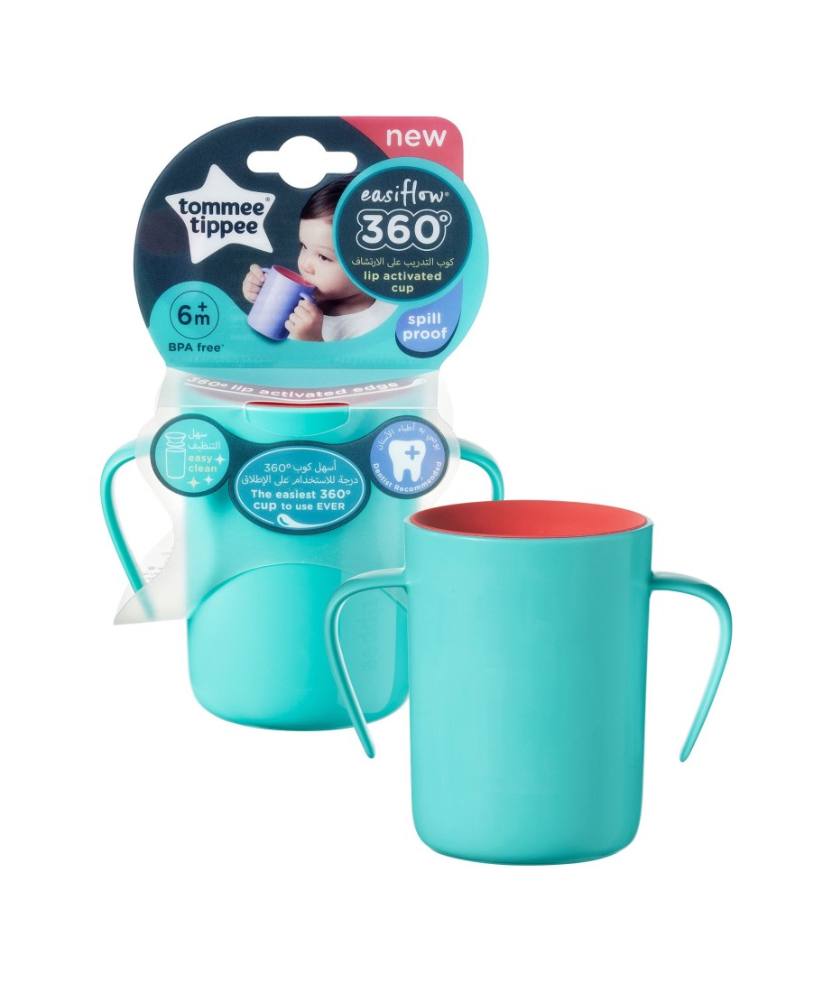 El Vaso 360º de Tommee Tippee ayuda al bebéo niño a aprender a beber como los mayores, inclinando el vaso y sorbiendo sin verter líquido por todas partes. Funciona como un vaso normal, con la ventaja de que impide los derrames. Incorpora asas.