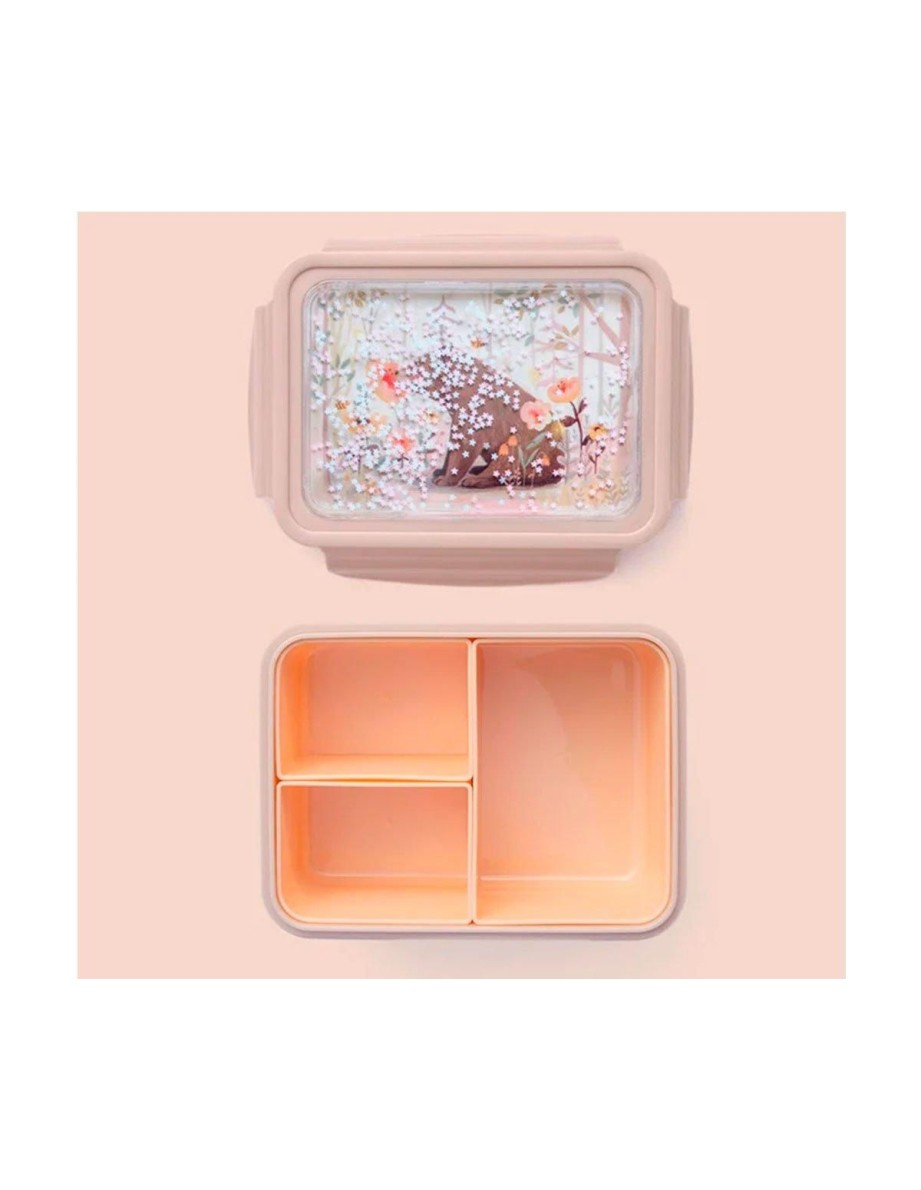 Preciosa y colorida caja de almuerzo con diseño de Kendra Binney En ella tu hijo podrá llevar al colegio el almuerzo, sandwich o cualquier cosita que quiera almacenar. Tiene 3 compartimentos que se pueden sacar y utilizar la caja de almuerzo con un sólo compartimento.