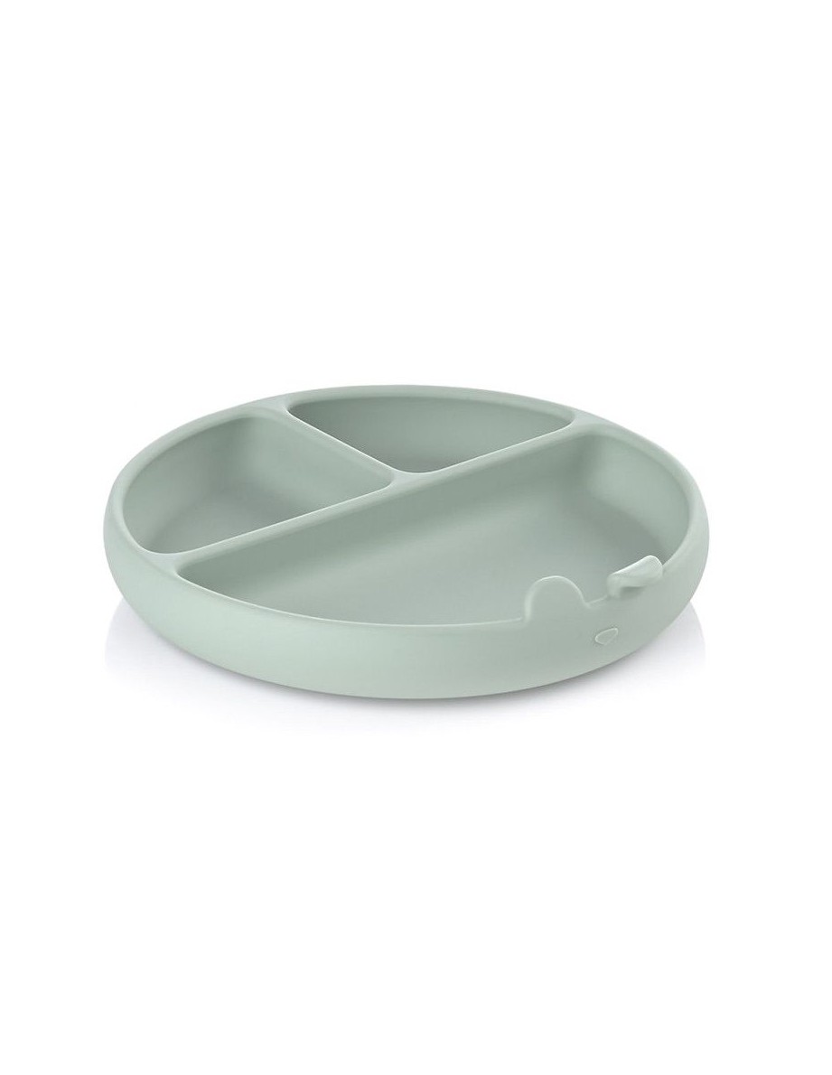 Plato de silicona con compartimentos para que el peque explore con sus manitas las diferentes texturas. Dispone de una potente ventosa que se adhiere a la superficie para mayor seguridad y comodidad. Compatible con esterilizadores, microondas, nevera, congelador, lavavajillas y horno (hasta 200°C).