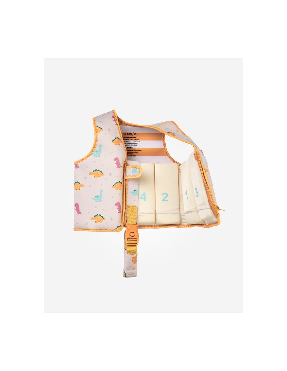 ¡Al agua patos! El chaleco flotador de Saro es el complemento perfecto para aprender a nadar de manera cómoda y segura. Dispone de 8 compartimentos con 3 piezas de flotación en cada uno, que podrán quitarse poco a poco según mejore la capacidad de flotar sin ayudas de tu peque, disfrutando de la playa o la piscina y garantizando su seguridad.