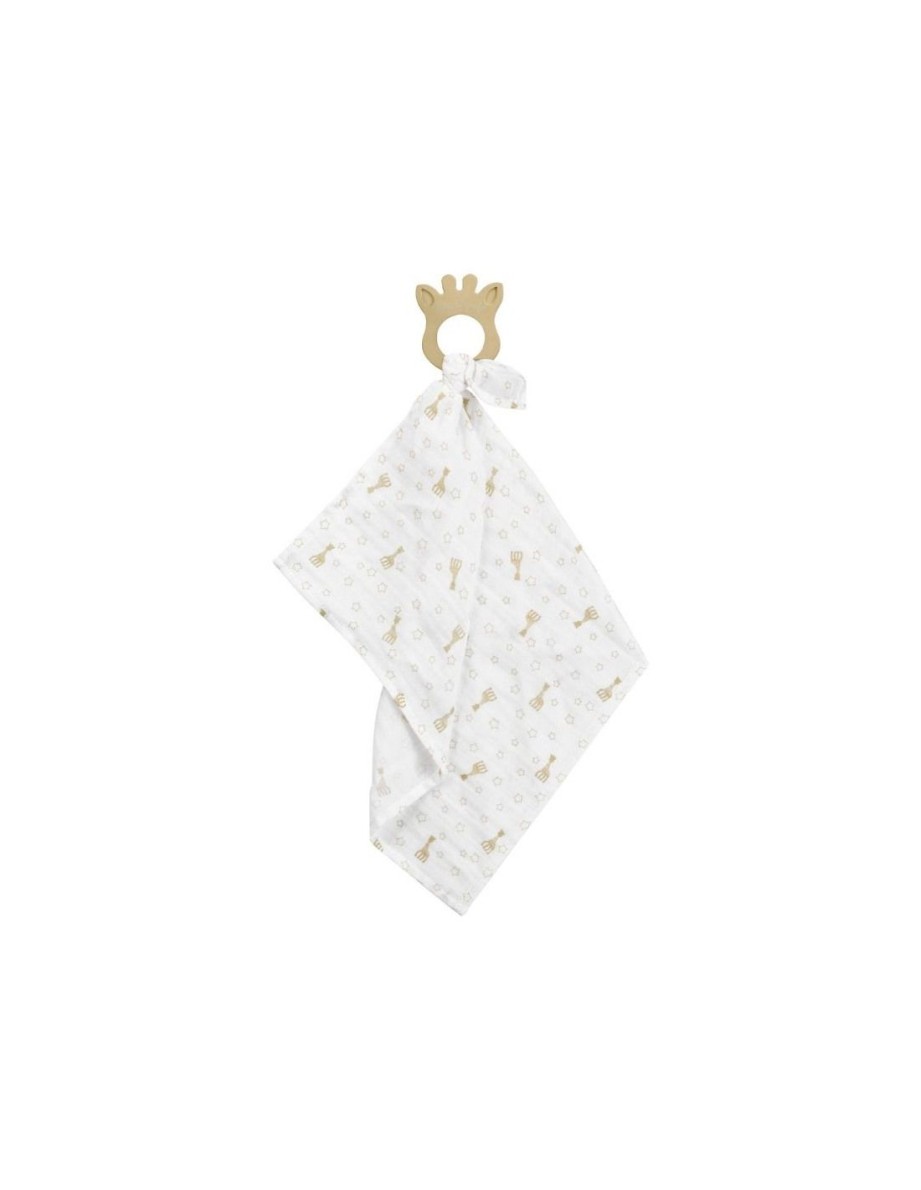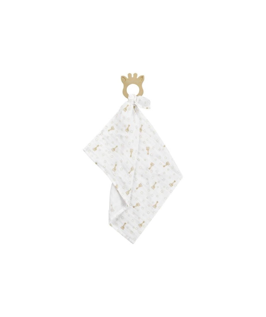 Con el anillo mordedor tu peque podrá reducir el dolor de sus encías cuando comience con la dentición y con la muselina podrás secarle las babitas o usarlo como babero cuando estés fuera de casa.
