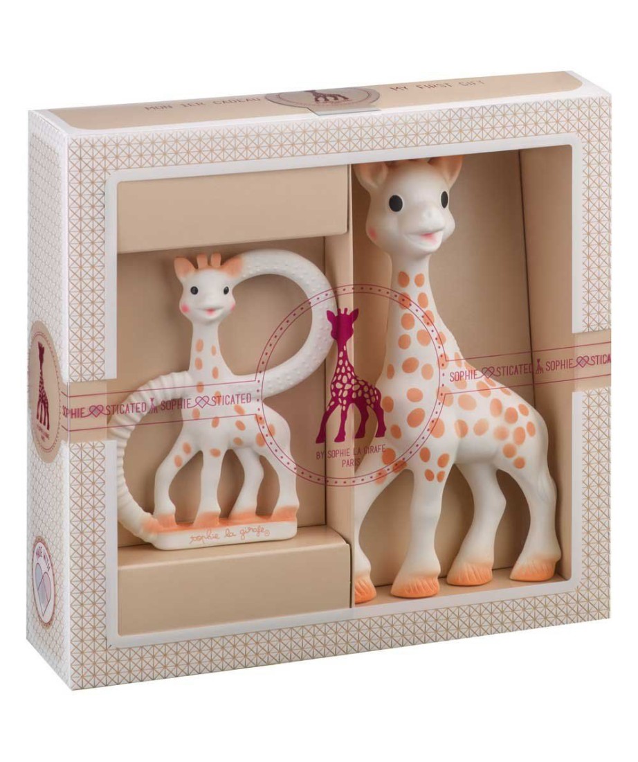 Un encantador set de regalo de nacimiento presentado en un estuche suave y refinado. Este set ofrece un mordedor de caucho 100% natural, ideal para calmar las encías doloridas del bebé, y Sophie la jirafa. Con el fin de ofrecer el regalo perfecto, este conjunto se acompaña de una tarjeta de regalo personalizable y una hermosa bolsa de regalo.