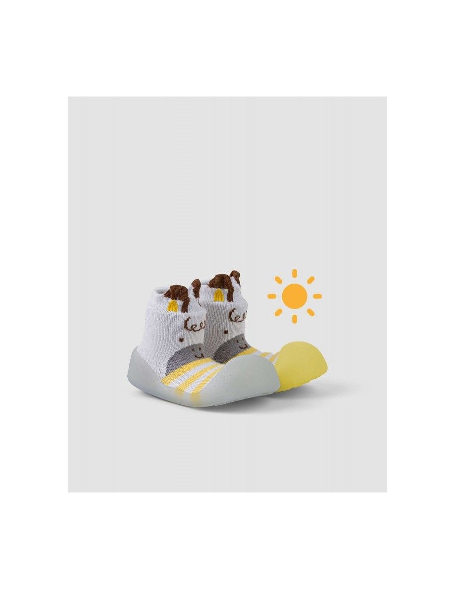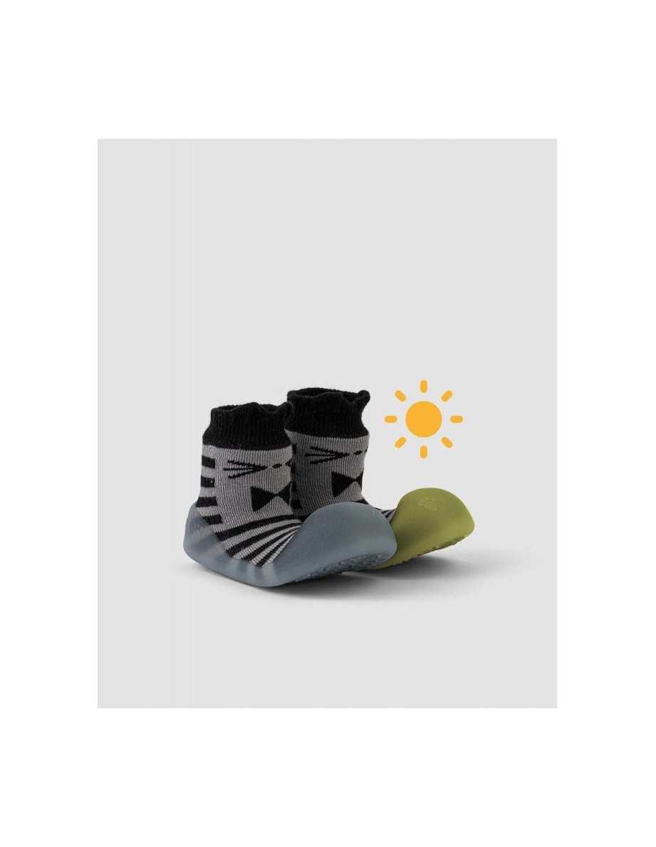 La suela de los zapatitos Chameleon cambian de color en reacción a la luz solar o a la luz ultravioleta. En ausencia de luz, la suela vuelve a su color original. Esta característica despierta la curiosidad de los niños pequeños, les ayuda a sentirse más cómodos con sus zapatos y les motiva a gatear o caminar entre lugares de sol y sombra.