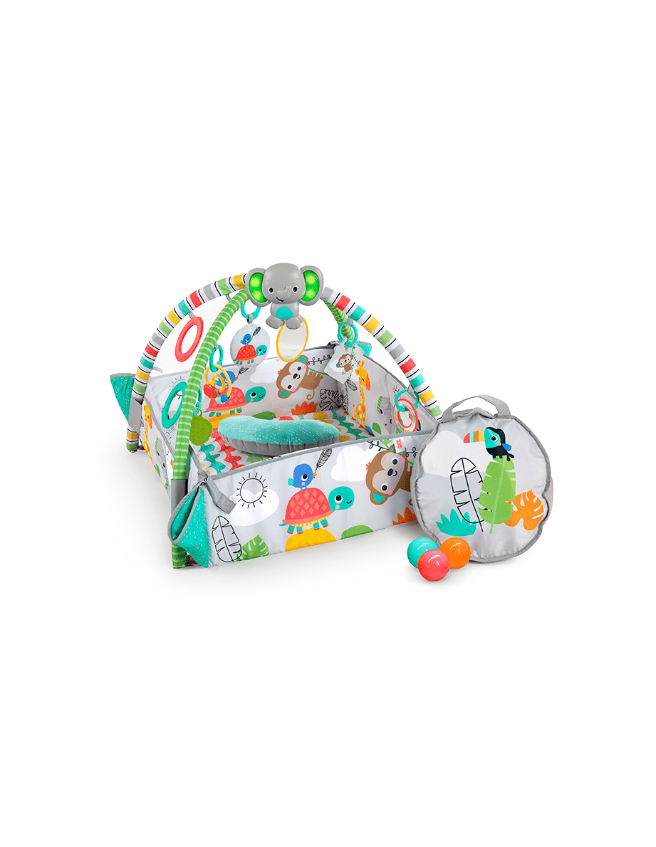 Convierte tu salón en una piscina de bolas con la manta de actividades y piscina de bolas 5 en 1 de Bright Starts.