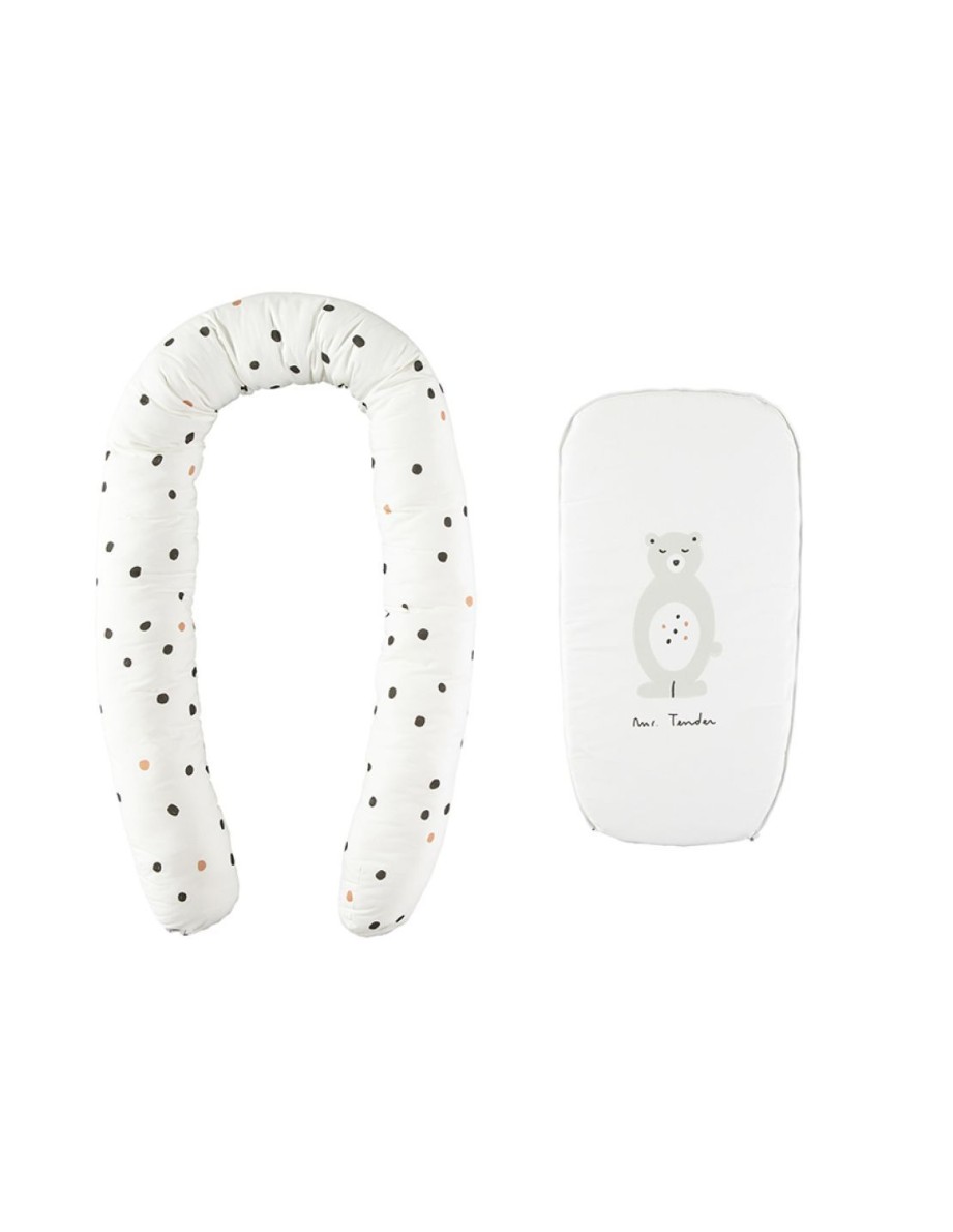 Accesorio perfecto que permite mantener al bebé cómodo y seguro en cualquier lugar. Se puede colocar en una cama, en el suelo o incluso en el interior de la misma cuna, de manera que el bebé quede más protegido y acurrucado. La posibiidad de abrir el rulo por un lado (píes) permite el uso de este accesorio con bebés de más edad. Aconsejado para bebés de 0 a 6 meses BASE (79 x 42 cm): 100% algodón RULO(230 cm): 100% algodón MEDIDA TOTAL: 93 x 63 x 17 cm RELLENO: de fibra de poliéster 100%, que le da la esponjosidad necesaria para el confort del bebé Nido desmontable y base desenfundable para un fácil lavado