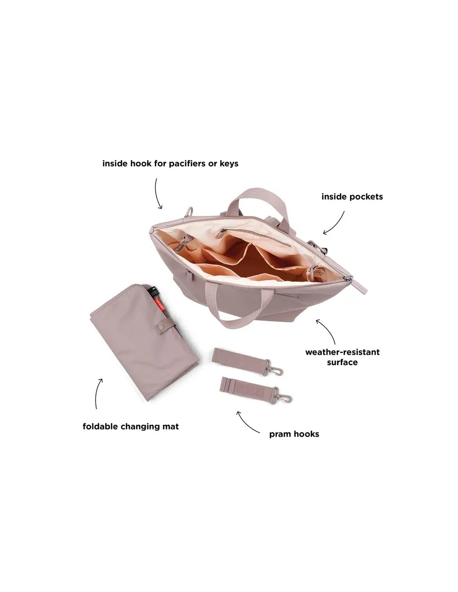 Incluye 7 bolsillos interiores y 1 bolsillo exterior con cremallera para facilitar la organización. Las correas de la mochila las puedes ajustar para llevarla cómodamente e incluye un práctico cambiador plegable con superficie impermeable.