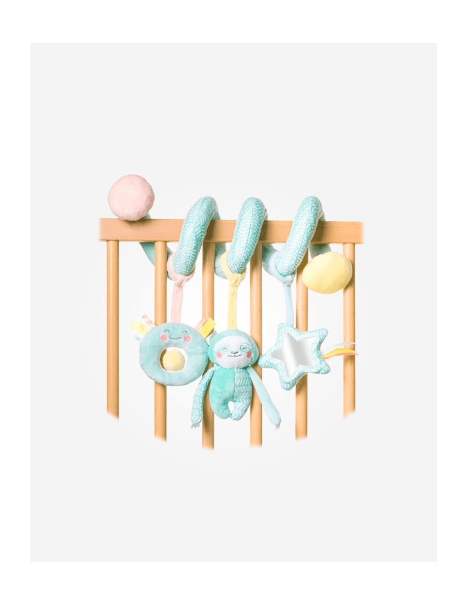 Por su fácil sistema de sujeción se puede enrollar en la cuna, la sillita de paseo o en cualquier otro sitio, divirtiendo al bebé allí donde esté.