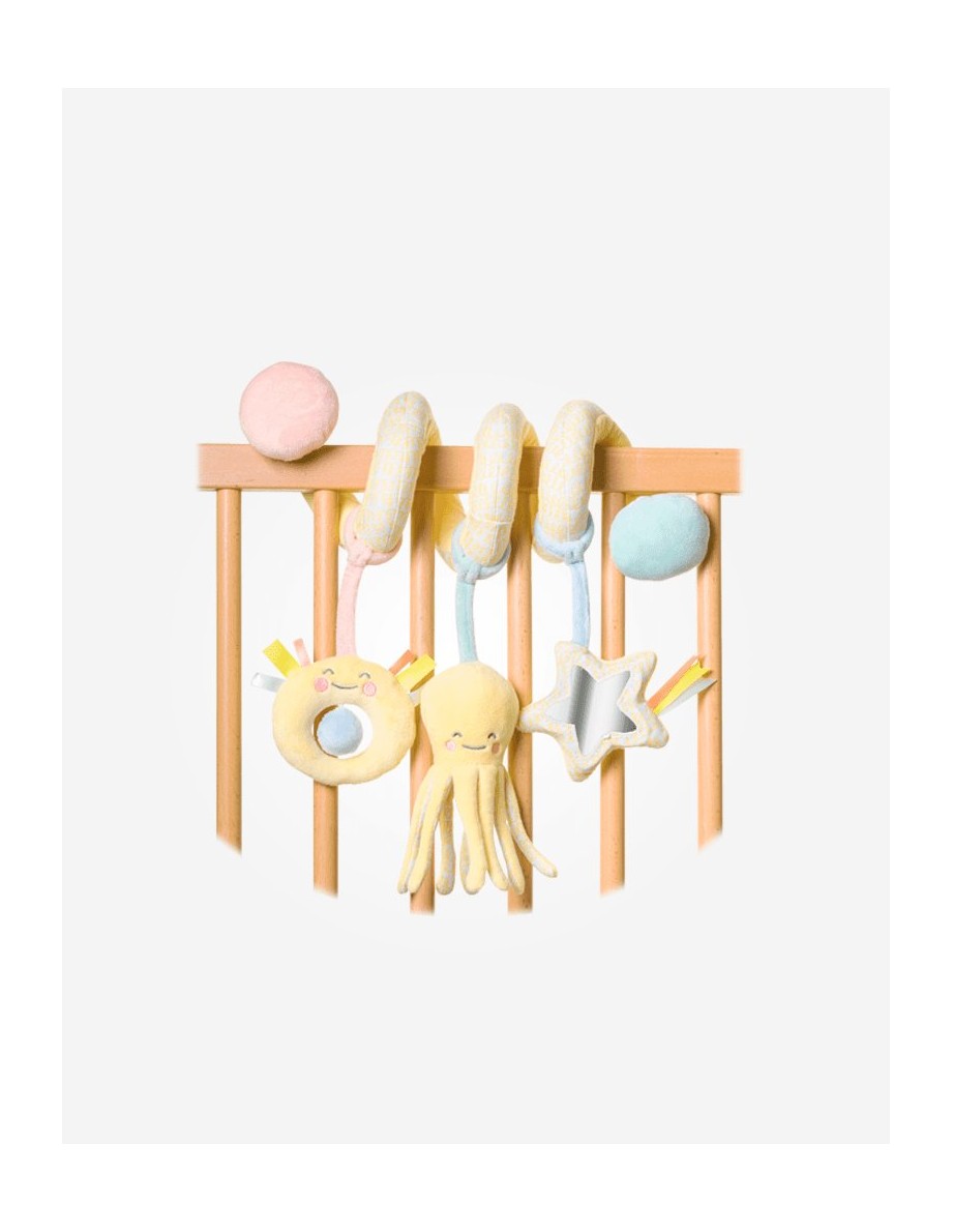 Por su fácil sistema de sujeción se puede enrollar en la cuna, la sillita de paseo o en cualquier otro sitio, divirtiendo al bebé allí donde esté.